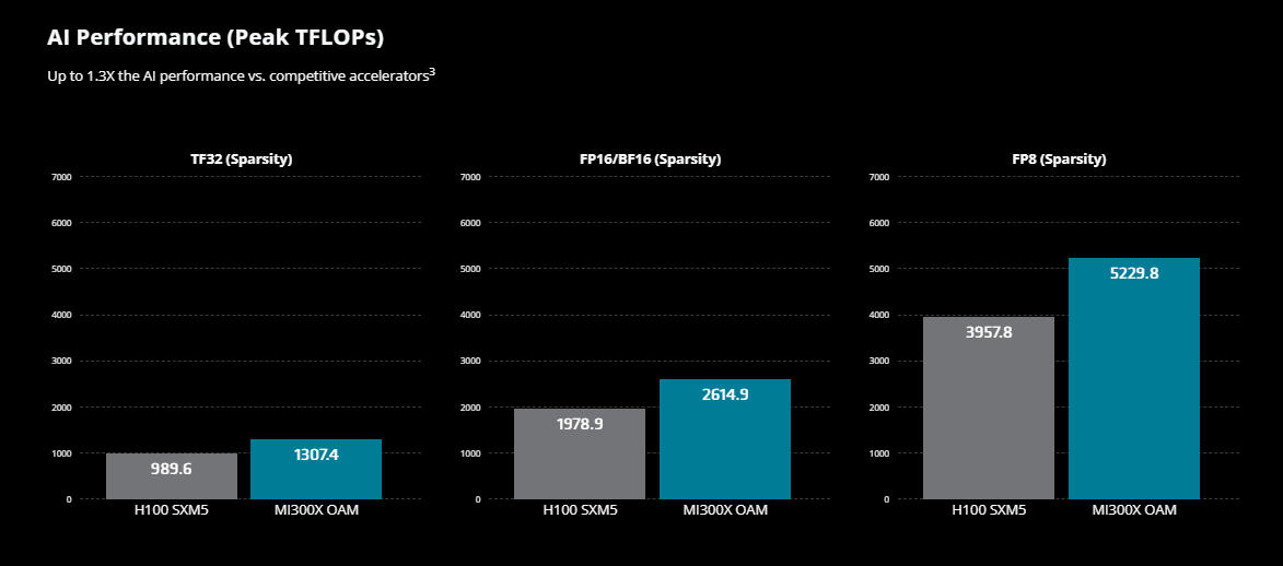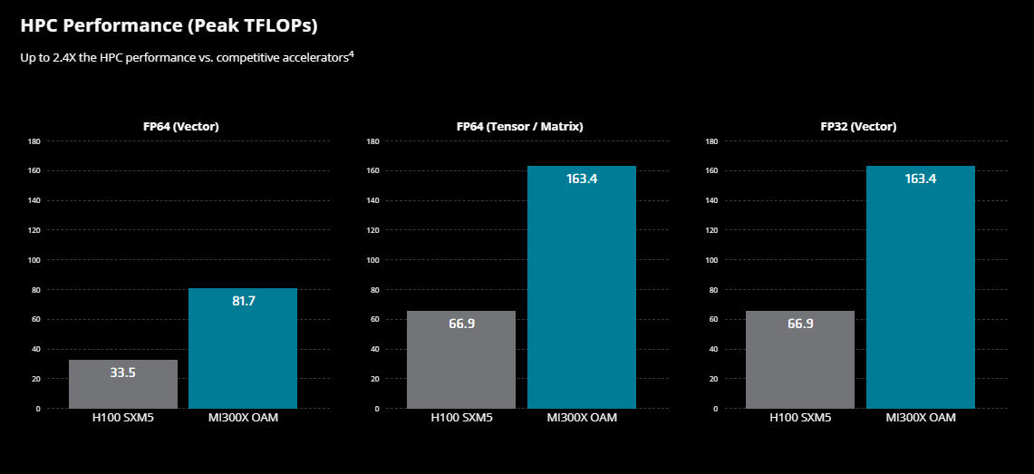 The AMD Instinct™ MI300 Series accelerators including the MI300X and MI300A, are optimally designed to handle the most challenging AI and HPC workloads. They provide outstanding computing power, substantial memory capacity, high-speed memory bandwidth, and compatibility with specialized data formats.